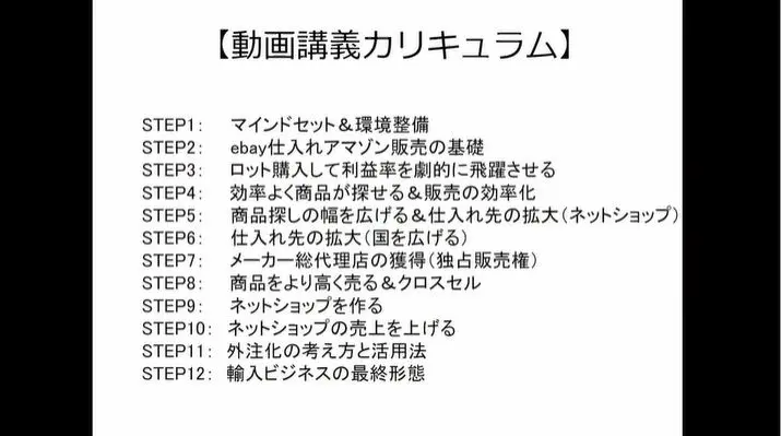 そして、輸入ビジネスの神髄では、“独占的に仕入れして、競合を蹴散らし、高い利益率でビジネスをする方法”を教えているということです。