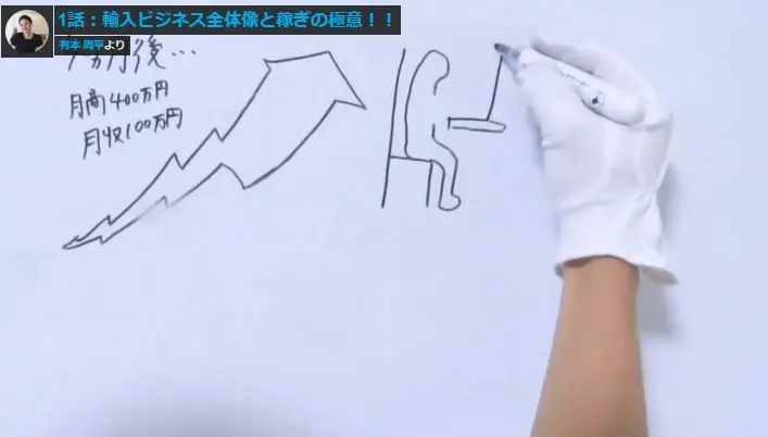 輸入ビジネスの情報発信をして集客をし、そのノウハウやスクールを販売して稼ぐ。