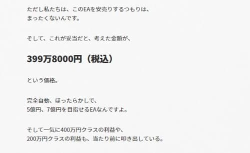これに対して、ブラックジャックFXの価格は399万8000円が妥当だと言われていて、