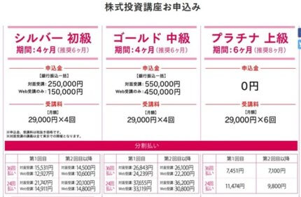 例えば、株式投資の講座には「初級、中級、上級」と3つのコースがありますが、中級を受けるなら初級、上級を受けるなら中級の講座を受けることが必須です。