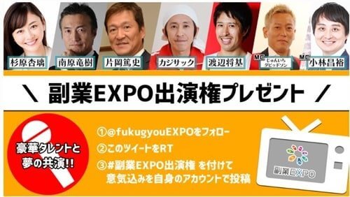 友達追加はこちら→https://t.co/iL4grFbkX8 pic.twitter.com/Bp85aznMxk— 副業EXPO事務局【公式】 (@fukugyouEXPO) April 24, 2020
