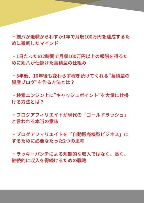上記は私がブログで月収100万円を稼ぎ出した時のノウハウや戦略のすべてが詰め込まれています。