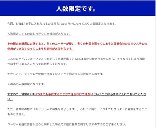そして「SPIDER」自体しっかりと利益を出せることが検証されたシステムになるので、近いうちに販売停止になってもおかしくありません。