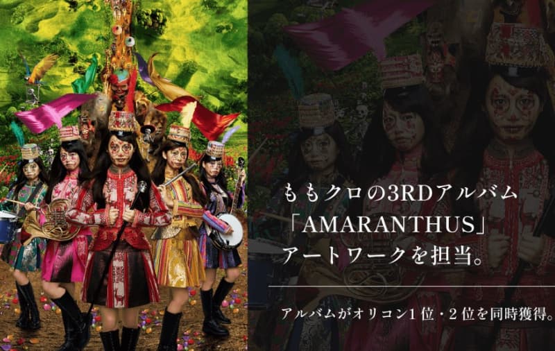 例えば「ももクロ」のアルバム、「いぬうやしき」の公式ビジュアル、映画「響」のポスターなど、ヒットアーティストや作品関連のグラフィックアートも担当しています。