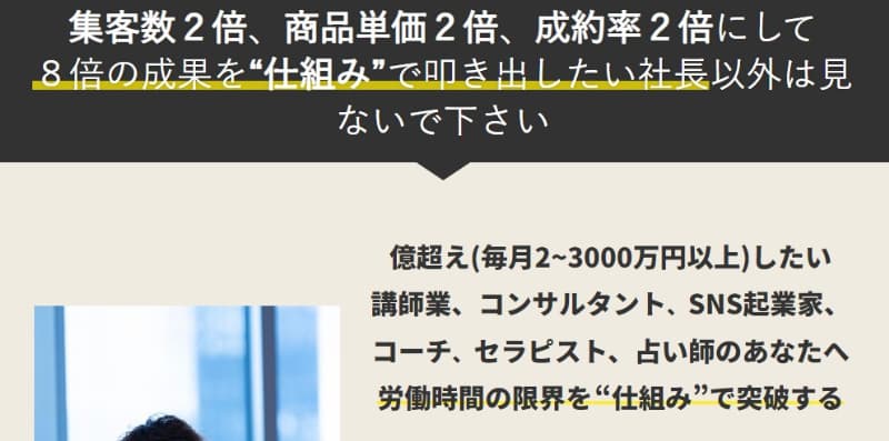 “集客数2倍、商品単価2倍、成約率2倍にして8倍の成果を“仕組み”で叩き出したい社長以外は見ないで下さい“