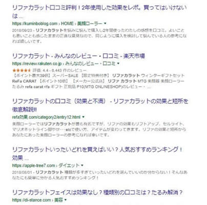 例えば、「リファカラット 評判」で検索すると、いろいろなサイトが出てきます。