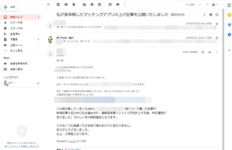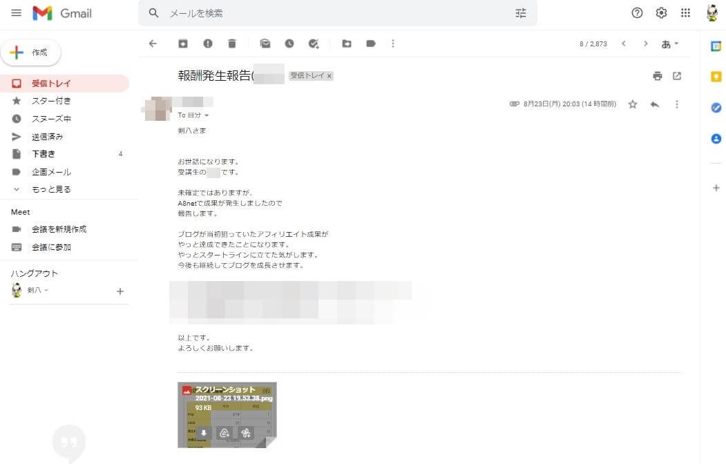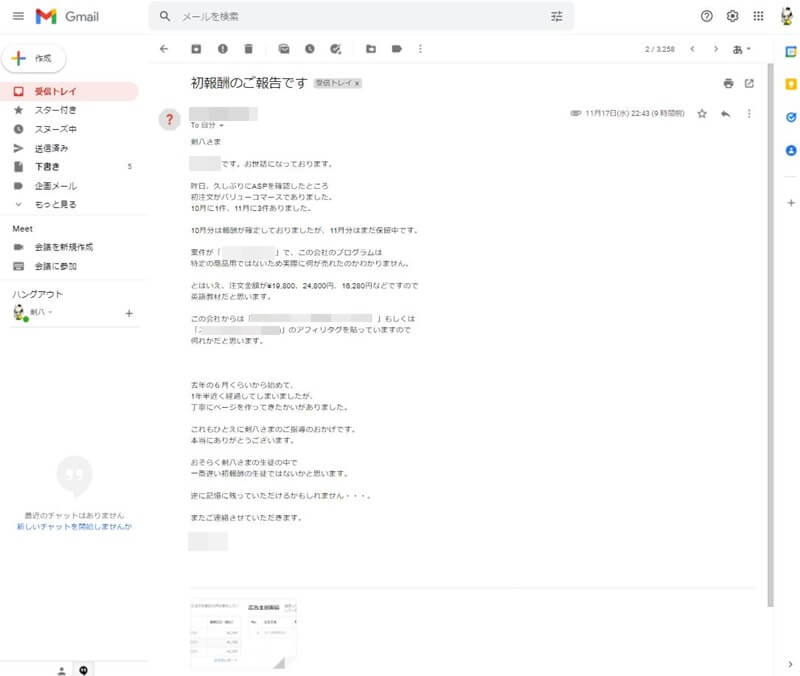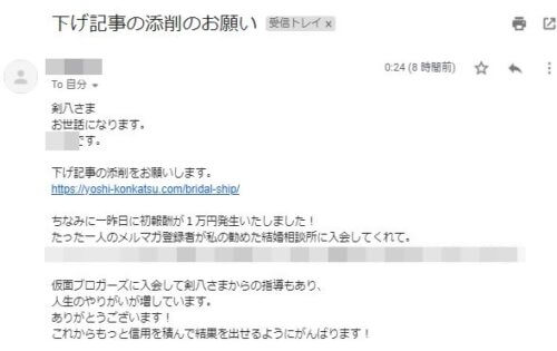 ちなみに、こちらは直近で頂いた「初報酬の成果報告」です。