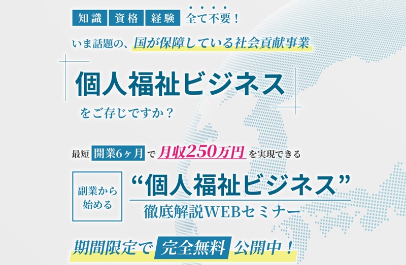 この記事を最後まで読んで頂ければ、あなたに「個人福祉ビジネス」が向いているのかどうかも知ることができるでしょう!