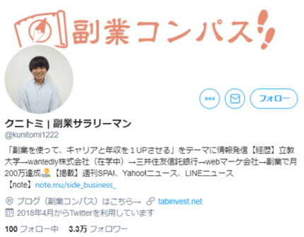 今回は、「クニトミ」さんとクニトミさんが運営するブログ「副業コンパス」を取り上げます。