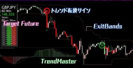 ただし、トレンド相場だけではチャンスも少ないため、そこを補うためにも「イグジットバンド」といったツールもあり、レンジ相場でも細かく利益が狙えるようになっています。