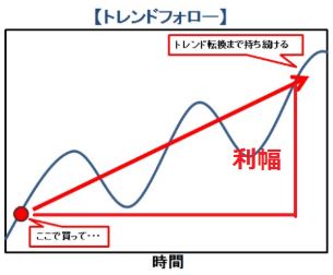 トレンドフォローとは、相場のトレンドを狙って利益を上げるロジックですね。