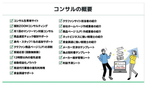 このコンサルの内容は簡単に言うと、ここまで話してきた内容の手助けをするというものです。