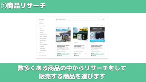 物販クラウドファンというビジネスがありますよと発信して、それを教えるというサービスを売って稼いでいますよね?