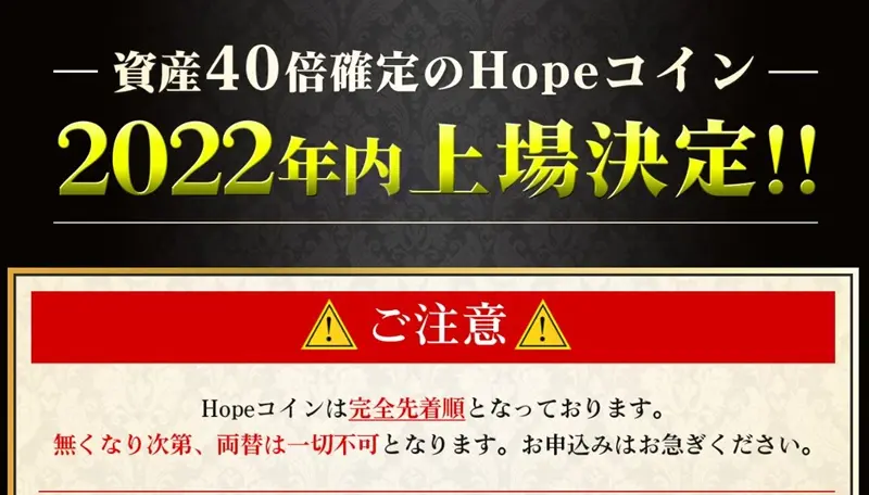 以上の3つの施策からも、仮想通貨Hope Coinでは1000万円の収入が狙えるということです。