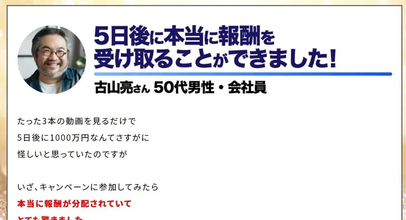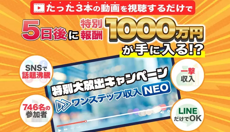 まず、ワンステップ収入ネオプラスは、参加者全員が報酬をゲットでき、登録から5日後には1000万円が手に入ると言われています。