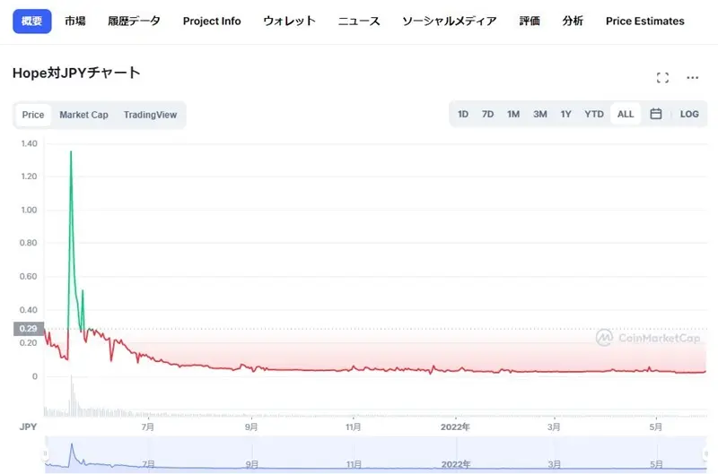 ちなみにですが、Hope Coinは2021年時点でもすでに取引が開始されていて、上場も繰り返しているみたいですね。