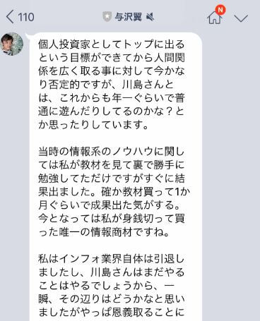 与沢さんが唯一身銭を切って買った教材が川島さんの情報商材で、それで結果も出しています。