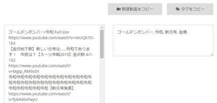 YouTubeツール虎徹は、自分がアップする動画のキーワードを入れると、その関連動画とタグが出てきます。