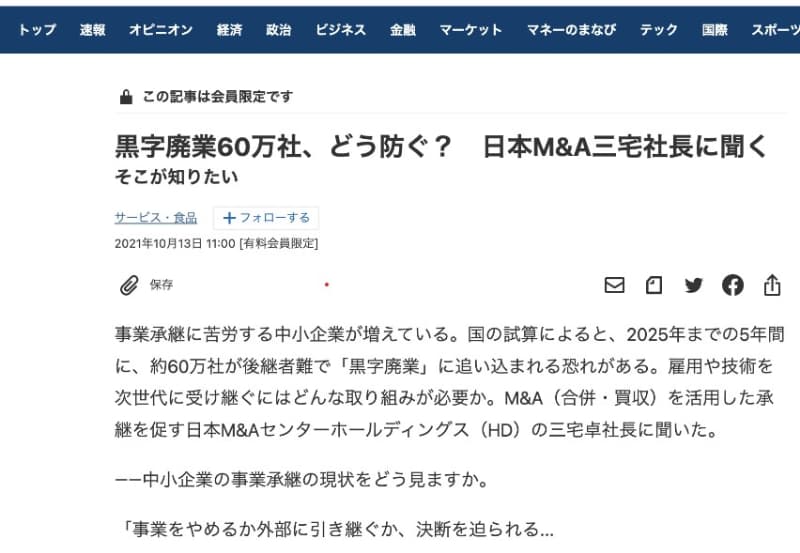 実際にそういったニュースも流れていて、会社や事業を存続させたいけどなかなか相手が見つからないってことですね。